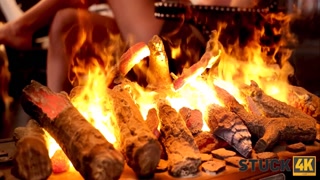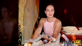STUCK4K. Burning fireplace and sex with husband help the Leanne Lace warm up