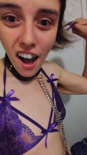 Daddy Bought Tiny Titties Camgirl Nipple Clamp Collar Purple Lingerie