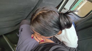 She sucks my dick on the public bus and then we end up fucking in a hotel.