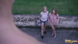 take facial cumshot after double blowjob with old man