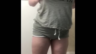 Chubby, big breasted teen strips teases for the first time