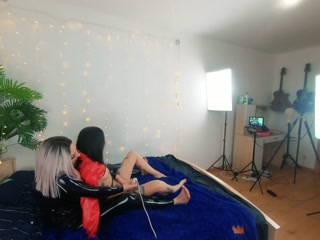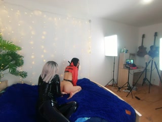 Backstage of pretty lesbian fetish girls doing sex video. Positive Femdom, sex play, latex leather