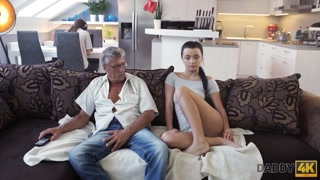 DADDY4K. Brunette satisfies her sexual needs with BF's father's stick