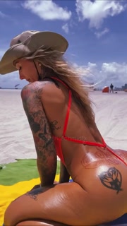 Geile tätowierte Blondine am FKK Strand in Miami