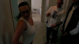Barely legal girl is fucked hard by two guys in the company of her stepmother!