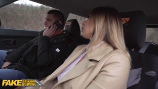 Fake Driving School - car trouble leads to instructor jerking off over horny babes nice natural tits