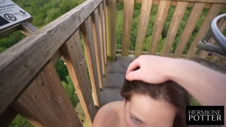 Perfect blowjob with a huge facial over the trees of Germany