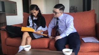 Classmate helps with lessons and pesters her with an offer of sex in a small ass
