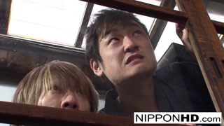 Japanese teen geisha has her hairy pussy toyed in a dojo