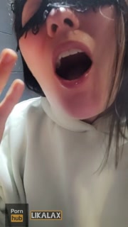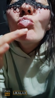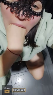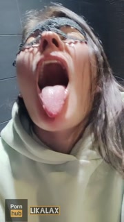 In the public toilet of the bar, she filled the floor with squirt and fucked her mouth with her fist