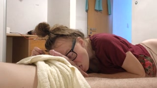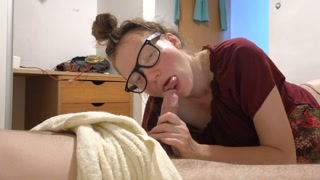 The wife of the boss sucks him