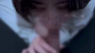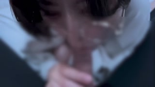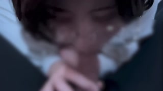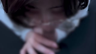 A girl with glasses who gives a cleaning blowjob until she gets smaller after pulling out.