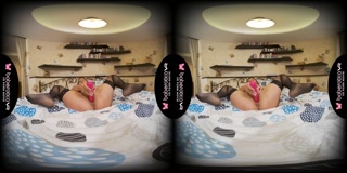 Solo blonde fuck doll, Lika Luna is masturbating, in VR