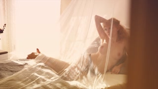 Busty nude redhead invites you to her bedroom
