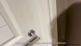 Stepmom's first-time double penetration in a toilet of a hotel shared room with her stepson
