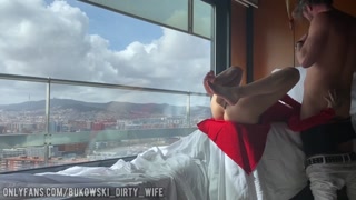 A beauty in a red dress gave herself to a stranger and swallowed all his sperm!