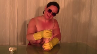 Hot fetish jerk off instruction with yellow rubber gloves to cum!