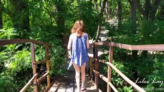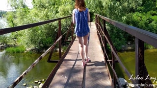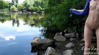 Walking naked along the river bank.