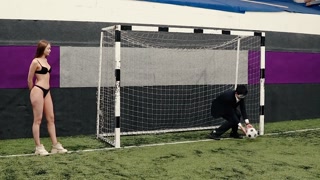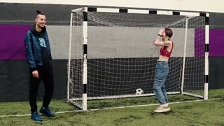 Two girls undressed at the blogger right during the shooting. Striptease football for undressing.