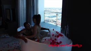 romantic set up with asian sucking the cum out a big dick