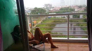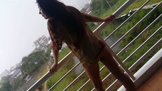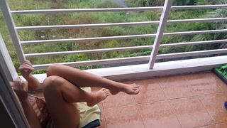 NO PANTIES at my open balcony#Play in the Tropical Rain