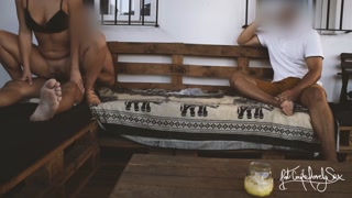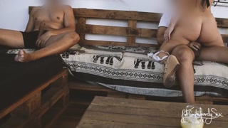 Sharing wife in a swinger club! Outdoor cuckold scene with 2 big cocks and 1 hot milf