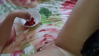 Кормлю свою девушку клубникой из киски, пупка, сисек и попки - lesbian_illusion