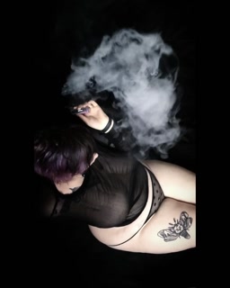 Curvy goth vaping in sheer outfit