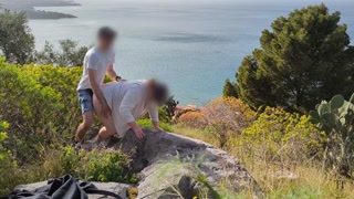 Spontaneous sex while hiking with a view over the city