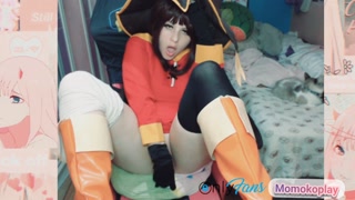 Megumin found the best way to explore her wet holes with long dildos - CUT version