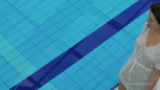 White dressed tight hairy babe Katy Soroka underwater