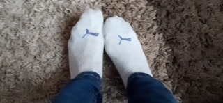 Very smelly and worn white Puma socks (POV foot worship, socks worship, stinky socks, foot smelling)