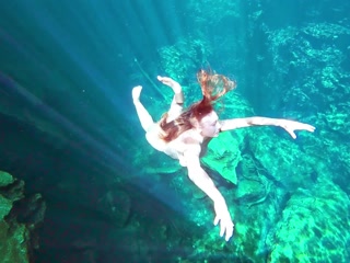 White swimsuit with tattoos babe Roxalana Cheh underwater
